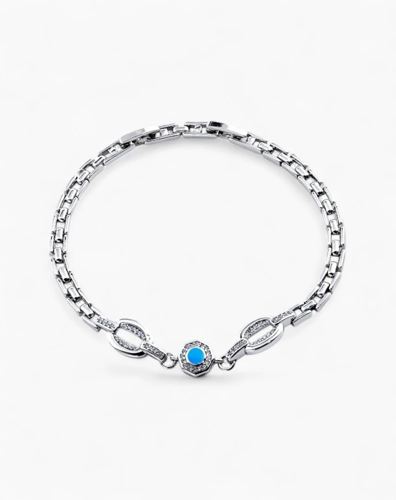 Cubic Ziconia Watch Link Chain in Stainless Steel