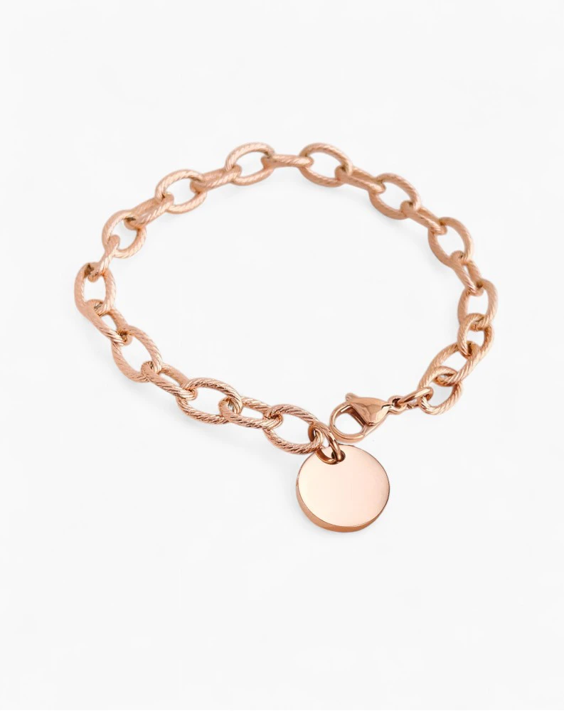 Custom Engraved Coin Bracelet Bold Stainless Steel Chain