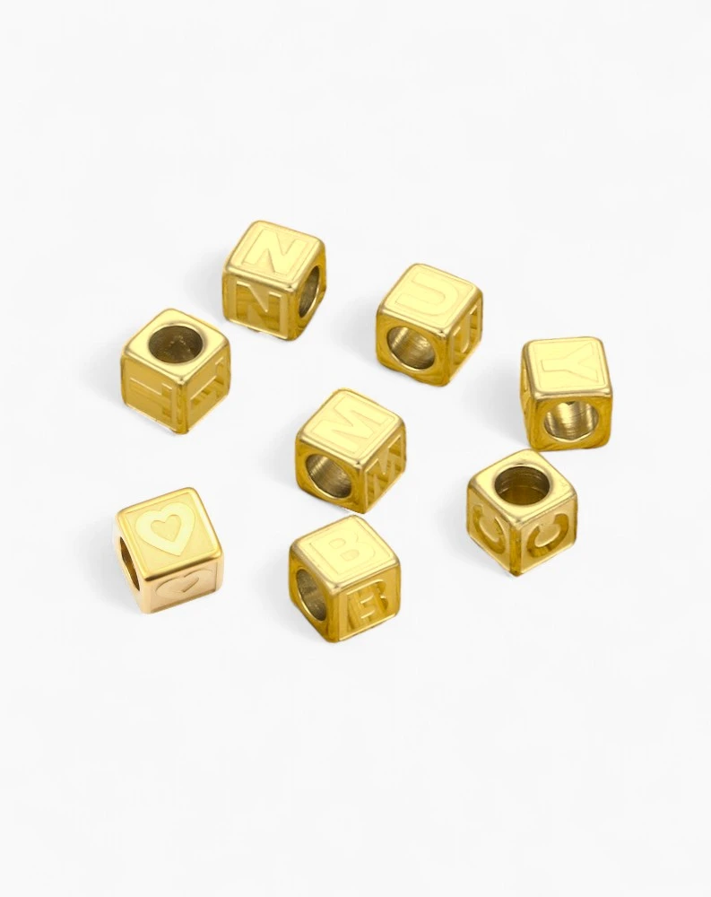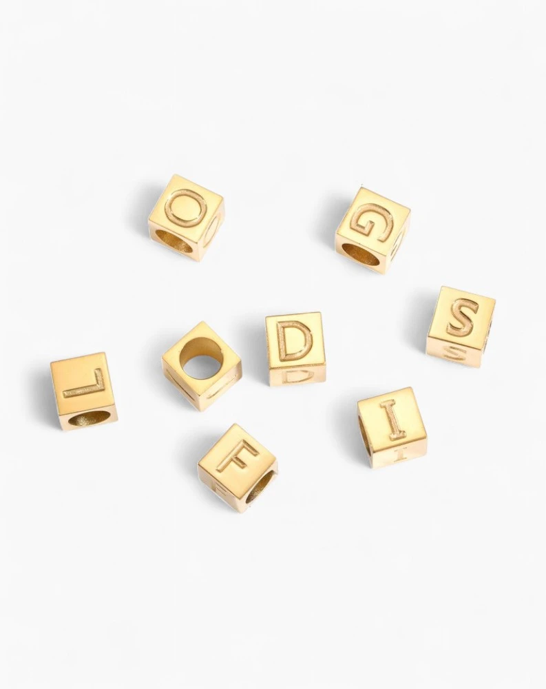 Custom Initial Cube Charm Beaded Stretch Bracelet in S.Steel