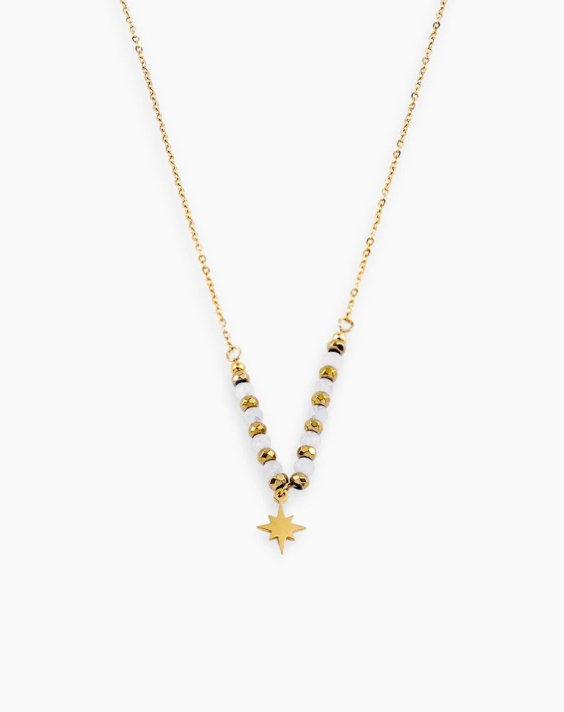 Star Pendant Necklace with Rose Quartz Beads